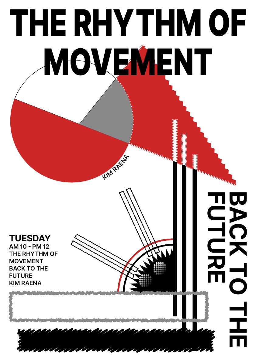 교수님께서 전체적으로 전부 다 구성주의식으로의 표현이 더 살아나고 강조된 것은 좋지만 자신만의 개성이나 특징같은 부분이 너무 없어서 아쉽다고 하셨고, 그러한 부분이 추가되었으면 좋겠다고 하셨다. 그리고 판형을 정하고 아트보드지 구석에 작게 정보를 3-4줄 정도 적어놓은 타이포그래피가 있었으면 좋겠다고 하셔서 판형을 A3로 정하고 기존의 작업물에 좀 더 나의 개성을 집어넣으려고 해보았다. 그리고 팀원들과 함께 정한 정보의 내용을 futura 라는 서체를 이용해 왼쪽 상단에 기입해 배치해주었다.
