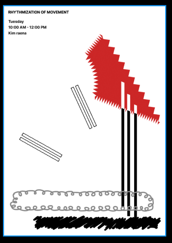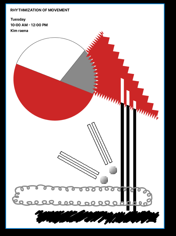 교수니께서 1/4 곡선을 없애고 삼각형의 안쪽은 효과를 없애라고 하셔서 다 삭제 처리를 했다. 그리고 회색 사각형을 좀 더 유동적인 형태로 바꾸고 원의 크기를 좀 더 키웠으면 좋겠다고 하셔서 원의 크기도 바꾸고 형태도 좀 더 다른 형식으로 바꾸어 최종 수정을 완료했다.