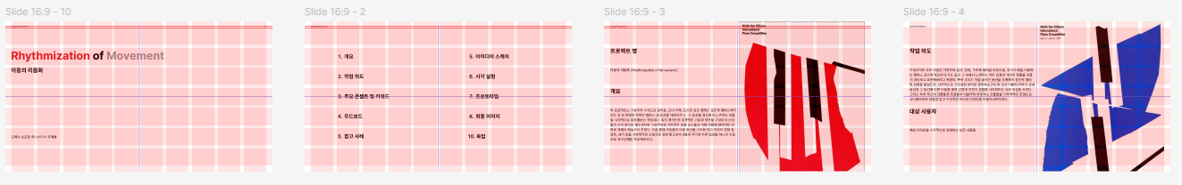 위에서 수정한 키비주얼을 가지고 속도가 좀 너무 빠르다는 피드백과 사각형들은 안 움직이면 좋겠다는 피드백에 따라 최종 수정을 했다.